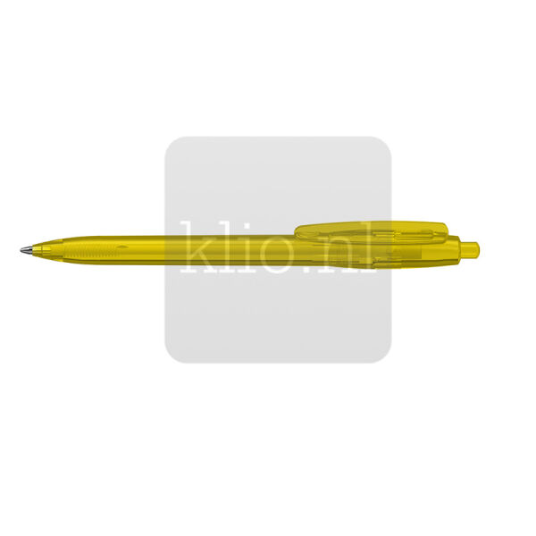 Kunststof balpen met drukmechanisme en transparante afwerking. Houder, clipdeel en drukknop kunnen naar wens uit bestaande kleuren gecombineerd worden door middel van mix&match principe. Deze bedrukte balpen kunnen we met jouw logo ontwerpen in gewenste kleurensamenstelling. Duurzaam model bedrukte balpen vanwege de Duitse hoogwaardige kwaliteit, verse vulling in blauw of zwart en dus ca. 3.000 meter schrijfplezier, productie in Duitsland en dus minimale CO2 uitstoot. Balpen met opdruk met 2 jaar garantie na aankoop. Europese productie.