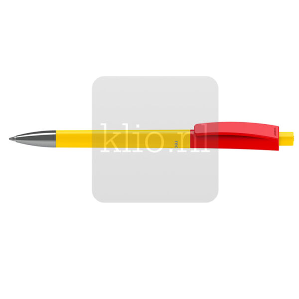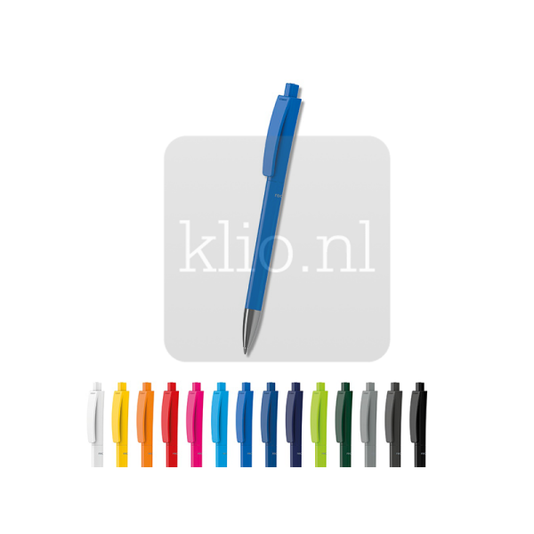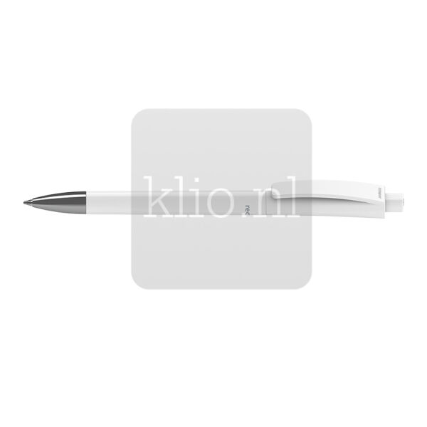 Recycled kunststof balpen met drukmechanisme en metale punt. Door de platte achterzijde bovenaan blijft de pen stabiel op tafel liggen, zodat jouw reclame mooi in beeld is. Houder, bovendeel houder met clip en drukknop kunnen naar wens uit bestaande kleuren gecombineerd worden door middel van mix&match principe. Deze bedrukte balpen kunnen we met jouw logo ontwerpen in gewenste kleurensamenstelling. Duurzaam model bedrukte balpen vanwege het recycled materiaal, Duitse hoogwaardige kwaliteit, verse vulling in blauw of zwart en dus ca. 3.000 meter schrijfplezier, productie in Duitsland en dus minimale CO2 uitstoot. Balpen met opdruk met 2 jaar garantie na aankoop. Europese productie.