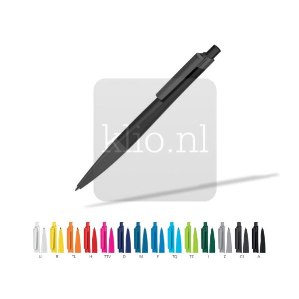 Recycled kunststof balpen met drukmechanisme. Door de driehoekige vorm blijft de pen stabiel op tafel liggen, zodat jouw reclame mooi in beeld is. Houder en clip kunnen naar wens uit bestaande kleuren gecombineerd worden door middel van mix&match principe. Deze bedrukte balpen kunnen we met jouw logo ontwerpen in gewenste kleurensamenstelling. Duurzaam model bedrukte balpen vanwege het recycled materiaal, Duitse hoogwaardige kwaliteit, verse vulling in blauw of zwart en dus ca. 3.000 meter schrijfplezier, productie in Duitsland en dus minimale CO2 uitstoot. Balpen met opdruk met 2 jaar garantie na aankoop. Europese productie.
