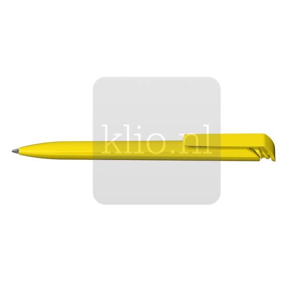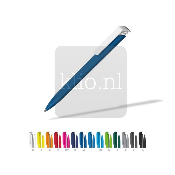 Recycled kunststof balpen met drukmechanisme. Door de driehoekige vorm blijft de pen stabiel op tafel liggen, zodat jouw reclame mooi in beeld is. Houder en clip kunnen naar wens uit bestaande kleuren gecombineerd worden door middel van mix&match principe. Deze bedrukte balpen kunnen we met jouw logo ontwerpen in gewenste kleurensamenstelling. Duurzaam model bedrukte balpen vanwege het recycled materiaal, Duitse hoogwaardige kwaliteit, verse vulling in blauw of zwart en dus ca. 3.000 meter schrijfplezier, productie in Duitsland en dus minimale CO2 uitstoot. Balpen met opdruk met 2 jaar garantie na aankoop. Europese productie.