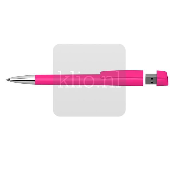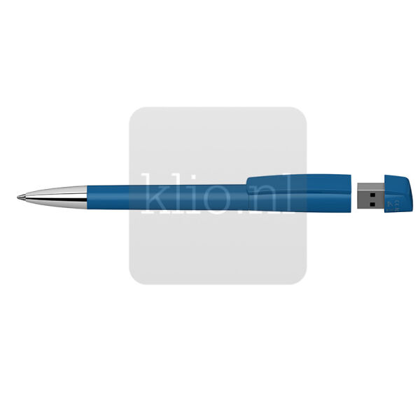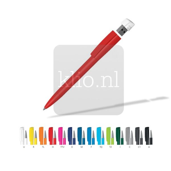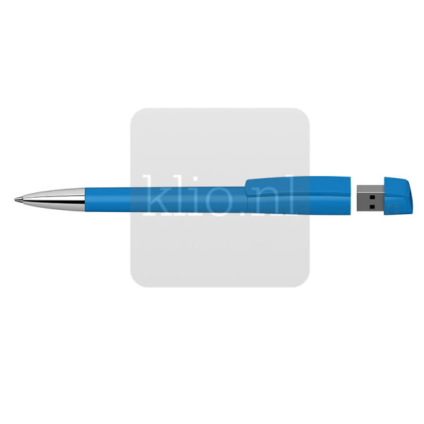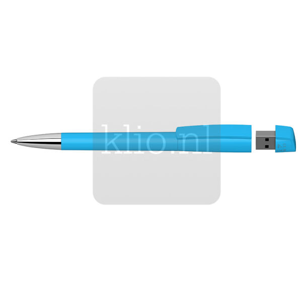 Innovatieve kunststof balpen met draaimechanisme en geintegreerde USB stick. Punt, houder, clipdeel en bovenstukje USB kunnen naar wens uit bestaande glanzende, softtouch of transparante kleuren gecombineerd worden. Ook met metalen punt mogelijk. Deze USB balpen is met diverse geheugencapaciteiten (GB) leverbaar. Vraag ons gerust om een offerte op maat inclusief visual.