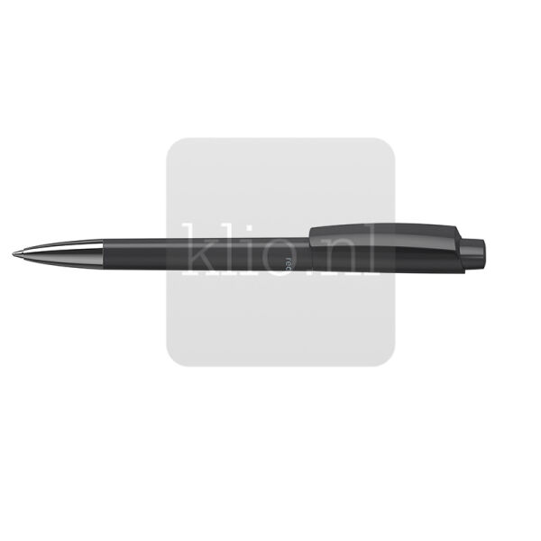 Recycled kunststof balpen met drukmechanisme en glanzend metalen clip. Door de platte achterzijde bovenaan blijft de pen stabiel op tafel liggen, zodat jouw reclame mooi in beeld is. Houder, bovendeel houder met clip en drukknop kunnen naar wens uit bestaande kleuren gecombineerd worden door middel van mix&match principe. Deze bedrukte balpen kunnen we met jouw logo ontwerpen in gewenste kleurensamenstelling. Duurzaam model bedrukte balpen vanwege het recycled materiaal, Duitse hoogwaardige kwaliteit, verse vulling in blauw of zwart en dus ca. 3.000 meter schrijfplezier, productie in Duitsland en dus minimale CO2 uitstoot. Balpen met opdruk met 2 jaar garantie na aankoop. Europese productie.